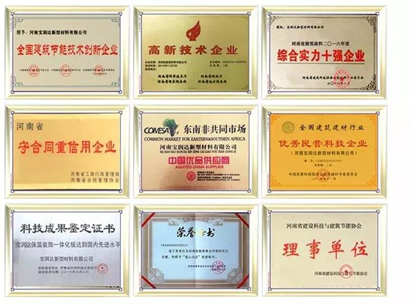 源于對環(huán)保的理解以及相應(yīng)國家綠色節(jié)能政策,寶潤達自成立以來始終注重科技研發(fā)與創(chuàng)新工作,憑借“國家高新技術(shù)企業(yè)” “河南省省級企業(yè)技術(shù)中心”自身優(yōu)勢,不斷加大科研投入,寶潤達先后獲得“一種聚氨酯復(fù)合板材甩膠裝置”“一種聚氨酯復(fù)合板材殘渣收集裝置 ”“一種新型鋼筋桁架板 ”“一種帶狀卷料輸送速度控制系統(tǒng)”“沉降式自動板材烘干室”、“仿石材一體保溫板”、“180度轉(zhuǎn)板涂裝輸送系統(tǒng)”……等實用新型專利。寶潤達積極探索產(chǎn)品成長趨勢,促進行業(yè)良好的發(fā)展態(tài)勢,助推節(jié)能建材行業(yè)進入全新時 。